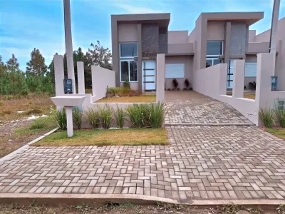 Geminado composto de 03 dormitórios (Sendo 1 Suíte), 01 Banheiro Social, Sala e cozinha integradas, Churrasqueira, Jardim de Inverno.