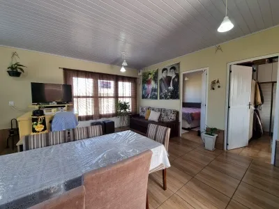 Imóvel composto de 02 dormitórios, banheiro, sala de estar e jantar e cozinha com churrasqueira;